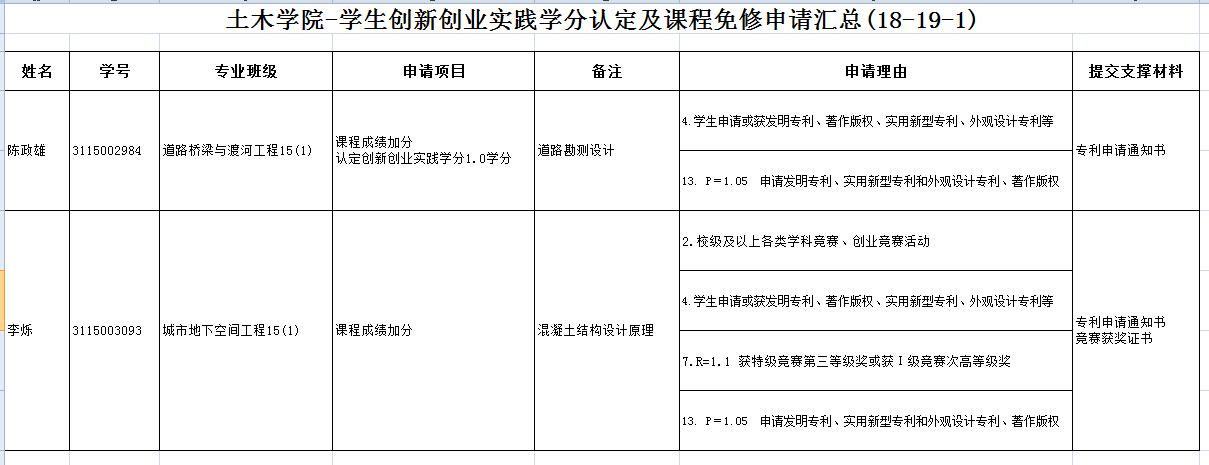 根据教务处《关于做好2018-2019学年度第一学期本科生申请创新创业实践学分认定及课程加分、免修等工作的通知》的精神,天游官网对照《天游8线路检测中心创新创业实践学分认定及课程免修实施暂行办法》对学生递交的申请进行初审,现公示如下。