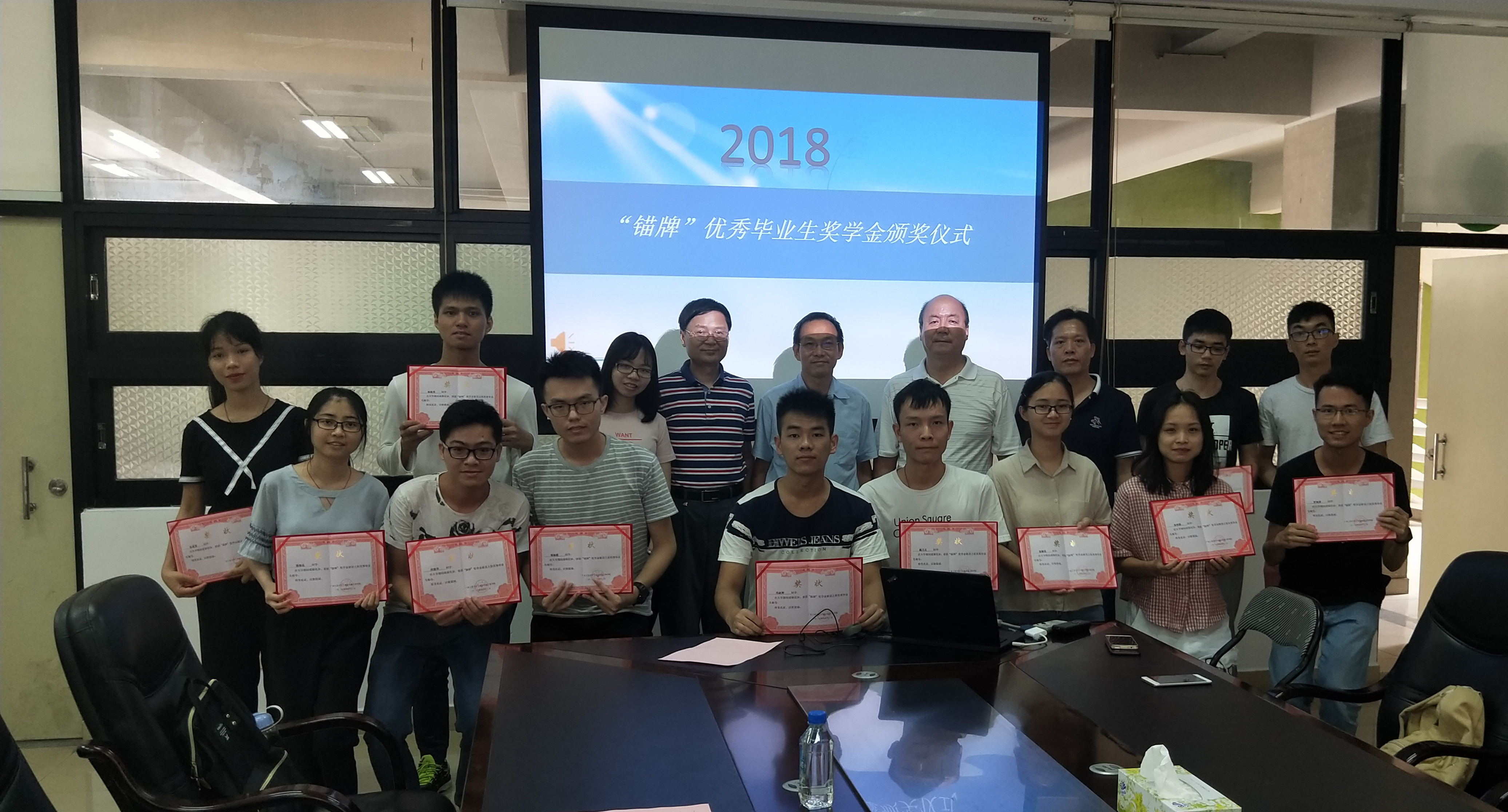 首先学院党委徐向东书记致辞,他代表学院欢迎中山环宇实业有限公司曾镇国先生一行到来,“锚牌”奖学金设立近二十年来,企业奖励了一批又一批的优秀毕业生,十分感谢企业对天游官网学子成长成才的关心与支持,其次,徐书记寄语2018届的毕业生同学,希望大家能够继承广工大的优良传统,在步入社会后,在工作岗位上能够勇于挑战自我,刻苦钻研,为社会发展贡献力量,同时,也不忘常回家看看。随后,郭维喜书记宣读了获奖名单。中山环宇实业有限公司的嘉宾和院领导分别为获奖学生颁奖并合影留念。颁奖结束后,获奖学生代表冯家辉发言。他回顾了自己四年走过的点点滴滴,本科科研经历直接影响了他的思考方式,如今也即将成为一名研究生,希望可以再次实现质的蜕变,为自己的职业道路创造更加坚实的路基。