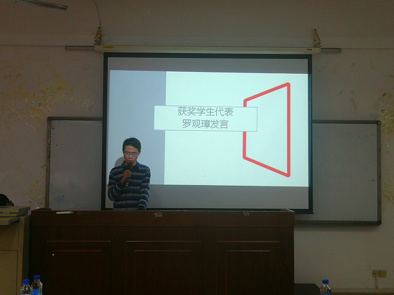 颁奖结束后,学生代表罗观璋发言,他代表获奖学生对学校老师,学院领导及企业表达了深深的感谢。他表明获得奇信奖学金是对他刻苦学习、突破自我的激励,并给予了后辈大学学习的建议,最后他对师生进行了祝愿。