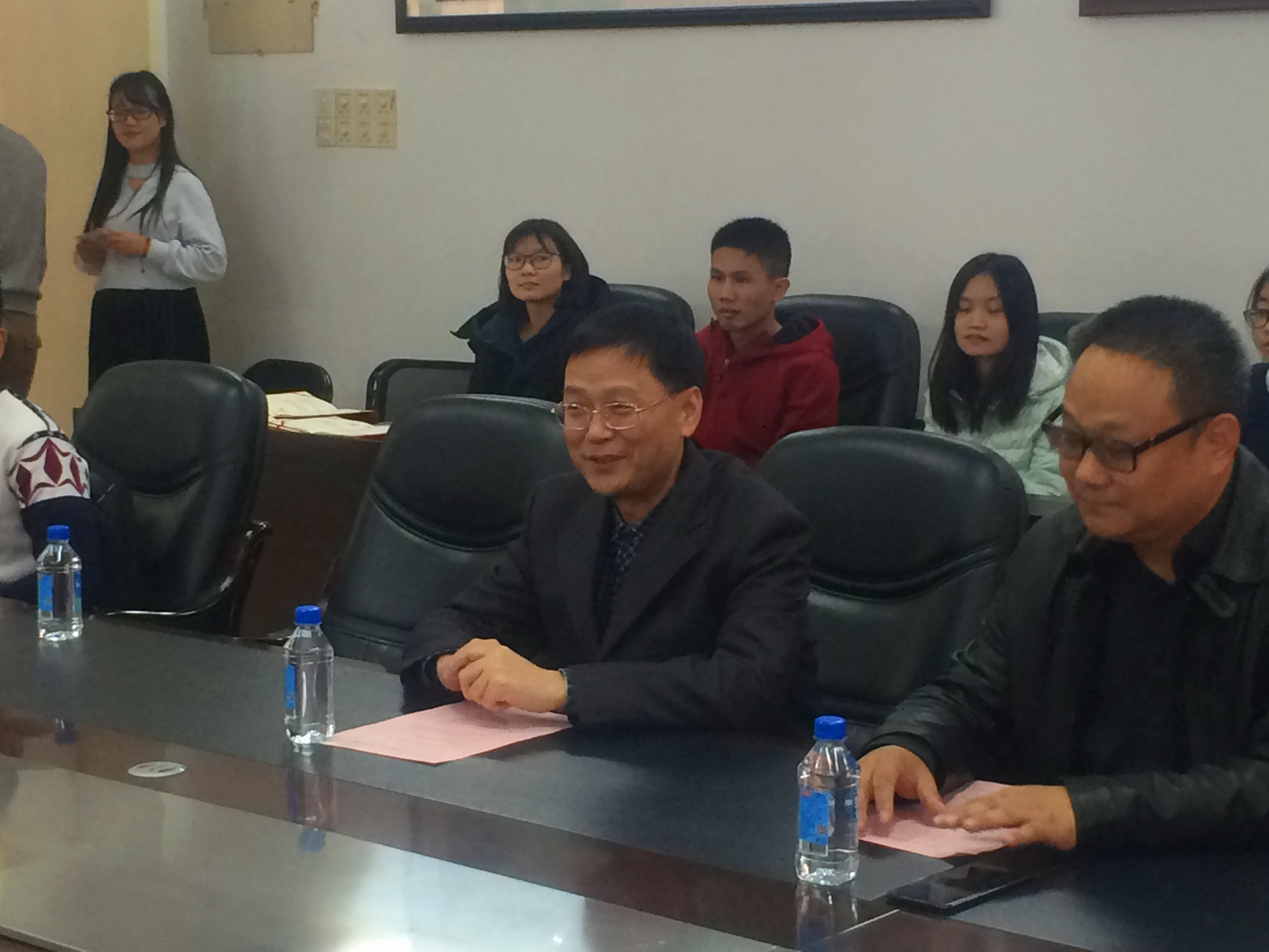 颁奖结束后,学生代表郑俊颖发言,他代表获奖学生对学校老师,学院领导及企业表达了深深的感谢。他表示这是他作为研究生所获得的最后一份奖学金,其是一种鼓励也是一种鞭策,并希望自己能在毕业之后投身社会建设以回馈社会。